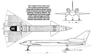 В марте 1958 года компания Sud выпустила брошюру, описывающую сверхзвуковой пассажирский самолет Super Caravelle «Version a propulsion nucléaire» — в варианте с ядерной силовой установкой.