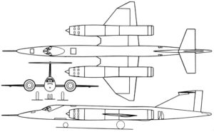 Двигательная установка. На самолете использованы два турбореактивных двигателя «Gyron Junior» DGJ.10R разработанный фирмой de Havilland (позже производившийся Bristol Siddeley) тягой 44,47 кН (4535 кГ) каждый. Использование форсажной камеры, работающей при температуре 2000 К, позволяет увеличить тягу до 62,27 кН (6350 кГ). При полете со скоростью М = 2,5 на высоте 12000 м тяга форсированного двигателя составляет 88,26 кН (9000 кГ). Двигатели размещены цилиндрических гондолах (диаметром ~ 1,2 м) с регулируемыми лобовыми воздухозаборниками и впускными и выпускными створками. Взаимное расположение воздухозаборников и заостренной носовой части фюзеляжа таково, что система косых скачков уплотнения оказывается оптимальной при больших сверхзвуковых скоростях полета. Значительное выдвижение передних частей гондол вперед по сравнению с передней кромкой крыла, а также использование модульной схемы конструкции с отдельными секциями длиной около 1,5 м позволяло легко заменять воздухозаборники, а в перспективе даже и двигатели (в зависимости от результатов испытаний).