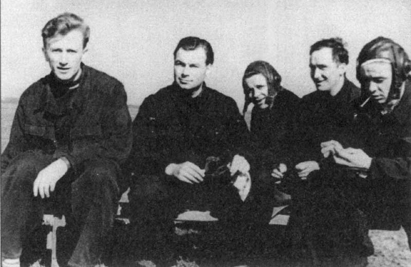 | На полетах. Слева направо: Орлов, Почернин, Терегулов, Пискунов, Чернов. Ессентуки, 1962 год. |