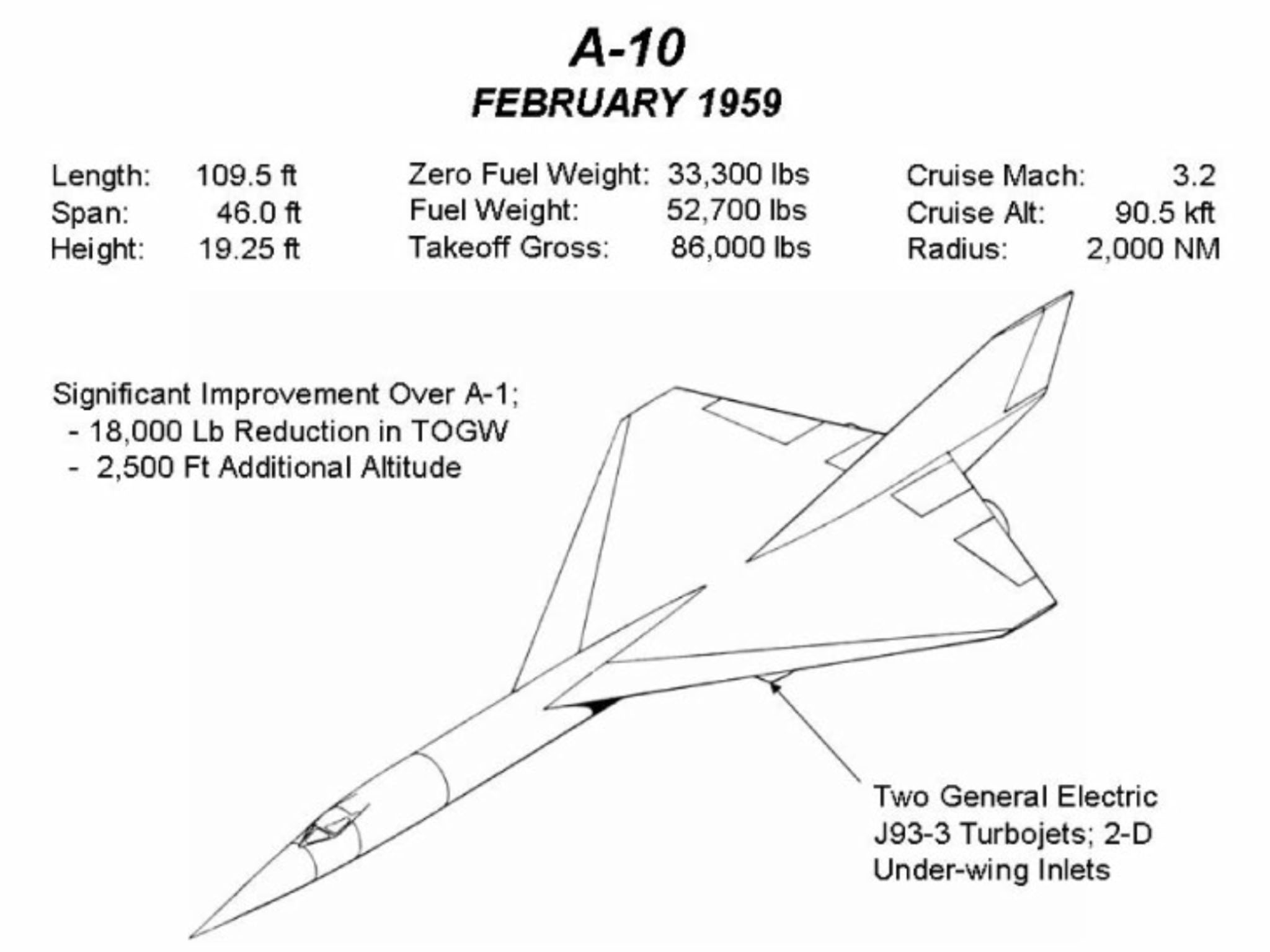 9 т. Турбореактивные двигатели Пратт энд Уитни J58 (гражданское обозначение JT1 ID-20) имели неплохие характеристики на больших числах М, имело смысл попробовать обойтись только
